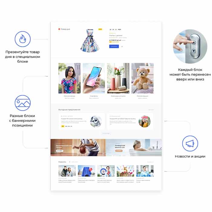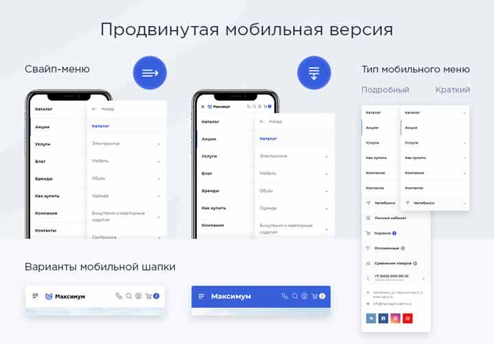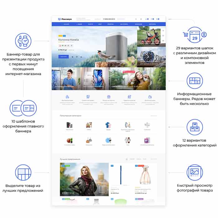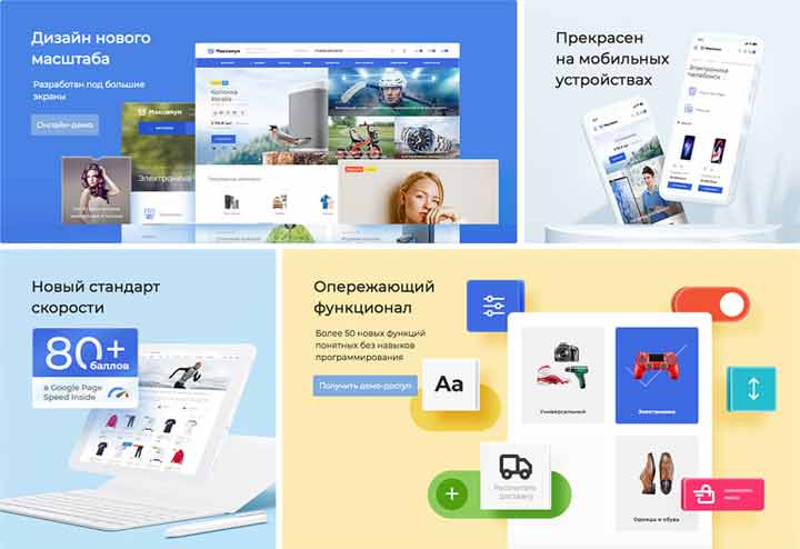 Универсальный интернет-магазин для товаров любой тематики. Разработан с учётом современных тенденций, пожеланий пользователей и технологий для быстрой загрузки LazyLoad. Объединяет в себе мощный функционал, последние технологии в сфере электронной коммерции и стильный дизайн. Идеально подойдёт для организации B2C или B2B eCommerce-торговли.