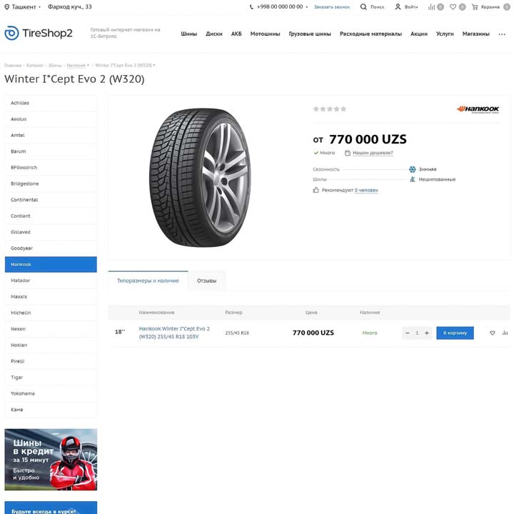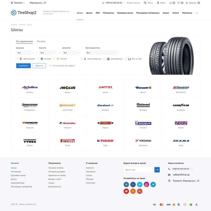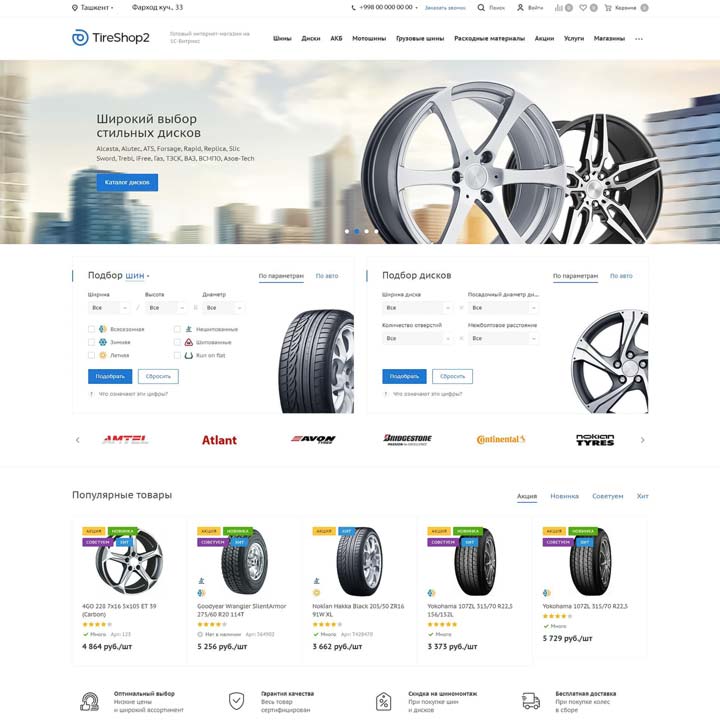 Возможности интернет-магазина Шины и диски 2.0 позволяют адаптировать, развивать и масштабировать онлайн-бизнес. Мультирегиональность, мобильная версия, настройки дизайна, посадочные страницы — все для успешного старта и высоких конверсий проекта!