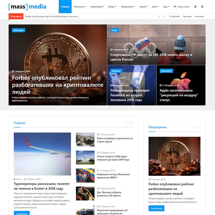 Универсальный новостной портал, который отлично подойдет для веб-издания любой тематики, интернет-журнала, СМИ или блога.